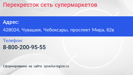 Перекресток, сеть супермаркетов по адресу 428024, Чувашия, Чебоксары, проспект Мира, 82в в дальнейшем Организация, размещена в следующих категориях: