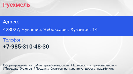 Русхмель по адресу 428027, Чувашия, Чебоксары, Хузангая, 14 в дальнейшем Организация, размещена в следующих категориях:
