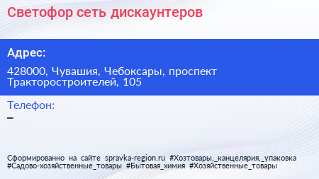 Светофор, сеть дискаунтеров по адресу 428000, Чувашия, Чебоксары, проспект Тракторостроителей, 105 в дальнейшем Организация, размещена в следующих категориях: