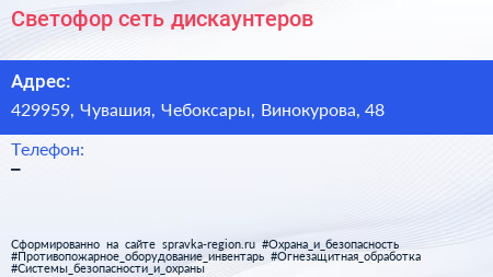 Светофор, сеть дискаунтеров по адресу 429959, Чувашия, Чебоксары, Винокурова, 48 в дальнейшем Организация, размещена в следующих категориях: