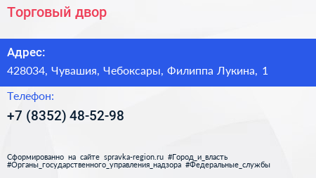Торговый двор по адресу 428034, Чувашия, Чебоксары, Филиппа Лукина, 1 в дальнейшем Организация, размещена в следующих категориях:
