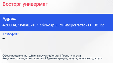 Восторг, универмаг по адресу 428034, Чувашия, Чебоксары, Университетская, 38 к2 в дальнейшем Организация, размещена в следующих категориях:
