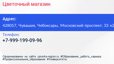Цветочный магазин по адресу 428017, Чувашия, Чебоксары, Московский проспект, 33 к2 в дальнейшем Организация, размещена в следующих категориях: