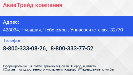 АкваТрейд, компания по адресу 428034, Чувашия, Чебоксары, Университетская, 32/70 в дальнейшем Организация, размещена в следующих категориях: