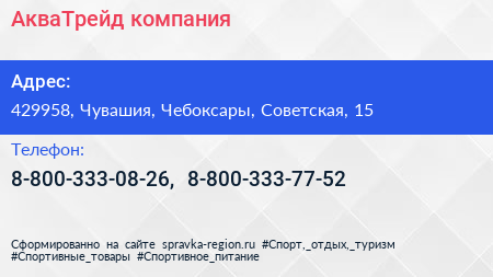 АкваТрейд, компания по адресу 429958, Чувашия, Чебоксары, Советская, 15 в дальнейшем Организация, размещена в следующих категориях: