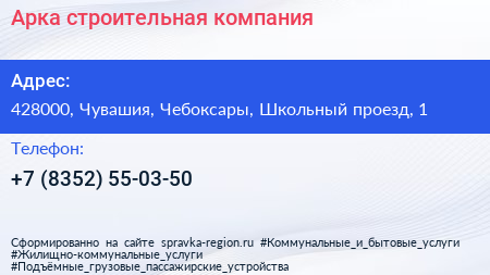 Арка, строительная компания по адресу 428000, Чувашия, Чебоксары, Школьный проезд, 1 в дальнейшем Организация, размещена в следующих категориях: