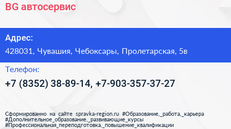 BG, автосервис по адресу 428031, Чувашия, Чебоксары, Пролетарская, 5в в дальнейшем Организация, размещена в следующих категориях: