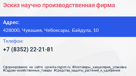 Эскиз, научно-производственная фирма по адресу 428000, Чувашия, Чебоксары, Байдула, 10 в дальнейшем Организация, размещена в следующих категориях: