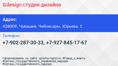 Gdesign, студия дизайна по адресу 428009, Чувашия, Чебоксары, Юрьева, 1 в дальнейшем Организация, размещена в следующих категориях: