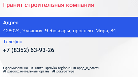Гранит, строительная компания по адресу 428024, Чувашия, Чебоксары, проспект Мира, 84 в дальнейшем Организация, размещена в следующих категориях: