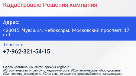 Кадастровые Решения, компания по адресу 428015, Чувашия, Чебоксары, Московский проспект, 17 ст1 в дальнейшем Организация, размещена в следующих категориях: