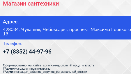 Магазин сантехники по адресу 428034, Чувашия, Чебоксары, проспект Максима Горького, 19 в дальнейшем Организация, размещена в следующих категориях: