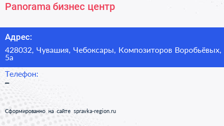 Panorama, бизнес-центр по адресу 428032, Чувашия, Чебоксары, Композиторов Воробьёвых, 5а в дальнейшем Организация, размещена в следующих категориях: