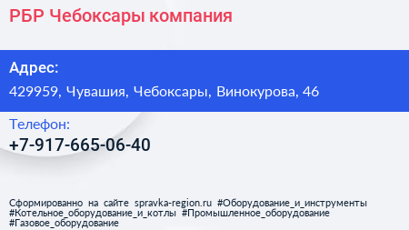 РБР Чебоксары, компания по адресу 429959, Чувашия, Чебоксары, Винокурова, 46 в дальнейшем Организация, размещена в следующих категориях: