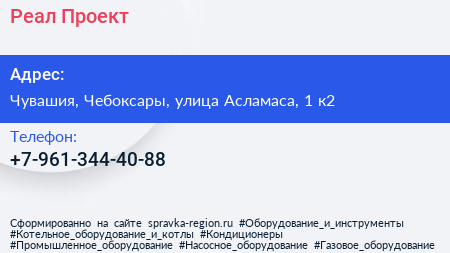 Реал Проект по адресу Чувашия, Чебоксары, улица Асламаса, 1 к2 в дальнейшем Организация, размещена в следующих категориях: