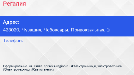 Регалия по адресу 428020, Чувашия, Чебоксары, Привокзальная, 1г в дальнейшем Организация, размещена в следующих категориях: