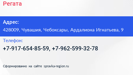 Регата по адресу 428009, Чувашия, Чебоксары, Ардалиона Игнатьева, 9 в дальнейшем Организация, размещена в следующих категориях: