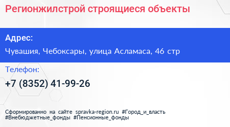Регионжилстрой, строящиеся объекты по адресу Чувашия, Чебоксары, улица Асламаса, 46 стр в дальнейшем Организация, размещена в следующих категориях: