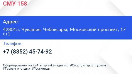 СМУ-158 по адресу 428015, Чувашия, Чебоксары, Московский проспект, 17 ст1 в дальнейшем Организация, размещена в следующих категориях: