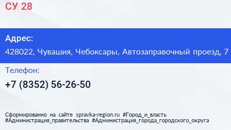 СУ-28 по адресу 428022, Чувашия, Чебоксары, Автозаправочный проезд, 7 в дальнейшем Организация, размещена в следующих категориях: