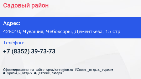 Садовый район по адресу 428010, Чувашия, Чебоксары, Дементьева, 15 стр в дальнейшем Организация, размещена в следующих категориях: