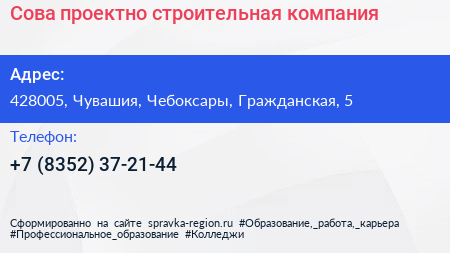 Сова, проектно-строительная компания по адресу 428005, Чувашия, Чебоксары, Гражданская, 5 в дальнейшем Организация, размещена в следующих категориях: