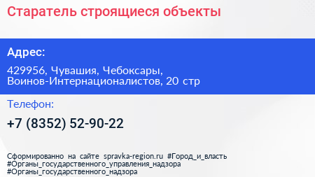 Старатель, строящиеся объекты по адресу 429956, Чувашия, Чебоксары, Воинов-Интернационалистов, 20 стр в дальнейшем Организация, размещена в следующих категориях: