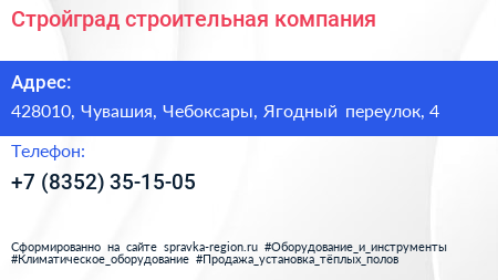 Стройград, строительная компания по адресу 428010, Чувашия, Чебоксары, Ягодный переулок, 4 в дальнейшем Организация, размещена в следующих категориях: