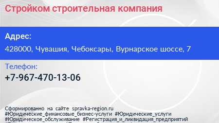 Стройком, строительная компания по адресу 428000, Чувашия, Чебоксары, Вурнарское шоссе, 7 в дальнейшем Организация, размещена в следующих категориях: