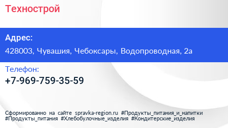Технострой по адресу 428003, Чувашия, Чебоксары, Водопроводная, 2а в дальнейшем Организация, размещена в следующих категориях: