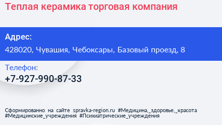 Теплая керамика, торговая компания по адресу 428020, Чувашия, Чебоксары, Базовый проезд, 8 в дальнейшем Организация, размещена в следующих категориях: