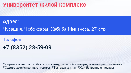 Университет, жилой комплекс по адресу Чувашия, Чебоксары, Хабиба Миначёва, 27 стр в дальнейшем Организация, размещена в следующих категориях: