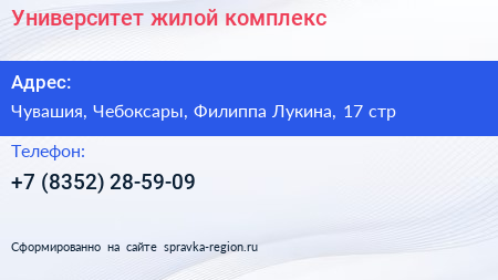 Университет, жилой комплекс по адресу Чувашия, Чебоксары, Филиппа Лукина, 17 стр в дальнейшем Организация, размещена в следующих категориях: