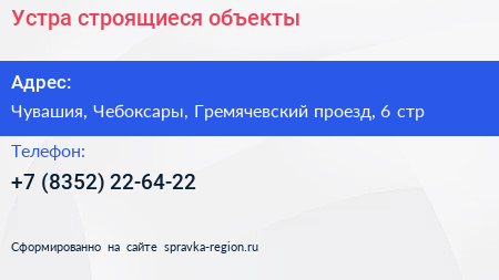 Устра, строящиеся объекты по адресу Чувашия, Чебоксары, Гремячевский проезд, 6 стр в дальнейшем Организация, размещена в следующих категориях: