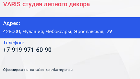 VARIS, студия лепного декора по адресу 428000, Чувашия, Чебоксары, Ярославская, 29 в дальнейшем Организация, размещена в следующих категориях: