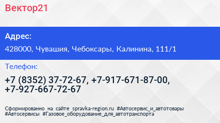 Вектор21 по адресу 428000, Чувашия, Чебоксары, Калинина, 111/1 в дальнейшем Организация, размещена в следующих категориях: