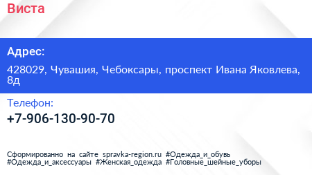 Виста по адресу 428029, Чувашия, Чебоксары, проспект Ивана Яковлева, 8д в дальнейшем Организация, размещена в следующих категориях:
