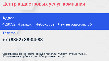Центр кадастровых услуг, компания по адресу 428032, Чувашия, Чебоксары, Ленинградская, 36 в дальнейшем Организация, размещена в следующих категориях: