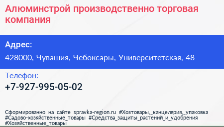 Алюминстрой, производственно-торговая компания по адресу 428000, Чувашия, Чебоксары, Университетская, 48 в дальнейшем Организация, размещена в следующих категориях:
