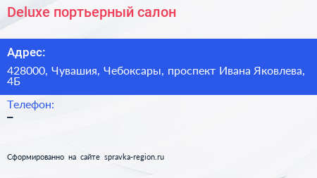 Deluxe, портьерный салон по адресу 428000, Чувашия, Чебоксары, проспект Ивана Яковлева, 4Б в дальнейшем Организация, размещена в следующих категориях: