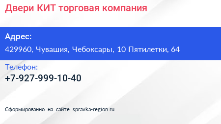 Двери-КИТ, торговая компания по адресу 429960, Чувашия, Чебоксары, 10 Пятилетки, 64 в дальнейшем Организация, размещена в следующих категориях: