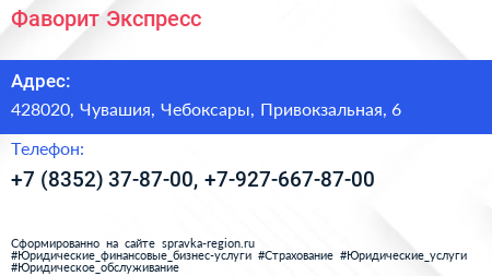 Фаворит-Экспресс по адресу 428020, Чувашия, Чебоксары, Привокзальная, 6 в дальнейшем Организация, размещена в следующих категориях: