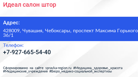 Идеал, салон штор по адресу 428009, Чувашия, Чебоксары, проспект Максима Горького, 36/1 в дальнейшем Организация, размещена в следующих категориях: