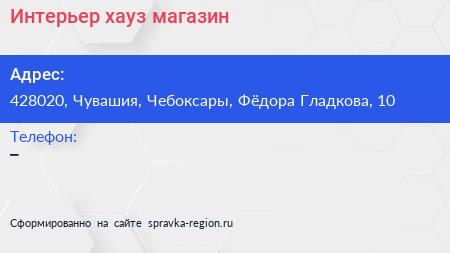 Интерьер хауз, магазин по адресу 428020, Чувашия, Чебоксары, Фёдора Гладкова, 10 в дальнейшем Организация, размещена в следующих категориях: