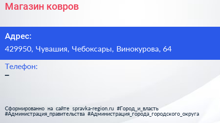 Магазин ковров по адресу 429950, Чувашия, Чебоксары, Винокурова, 64 в дальнейшем Организация, размещена в следующих категориях: