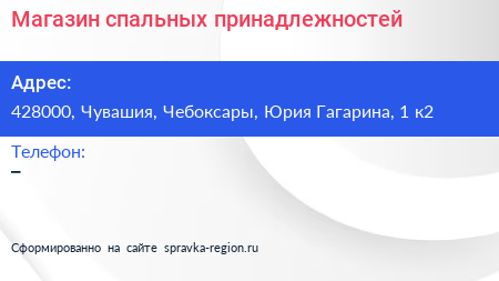 Магазин спальных принадлежностей по адресу 428000, Чувашия, Чебоксары, Юрия Гагарина, 1 к2 в дальнейшем Организация, размещена в следующих категориях: