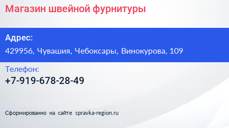 Магазин швейной фурнитуры по адресу 429956, Чувашия, Чебоксары, Винокурова, 109 в дальнейшем Организация, размещена в следующих категориях: