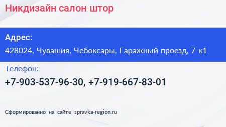 Никдизайн, салон штор по адресу 428024, Чувашия, Чебоксары, Гаражный проезд, 7 к1 в дальнейшем Организация, размещена в следующих категориях: