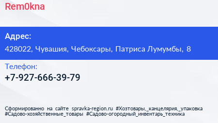 Rem0kna по адресу 428022, Чувашия, Чебоксары, Патриса Лумумбы, 8 в дальнейшем Организация, размещена в следующих категориях: