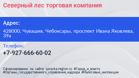 Северный лес, торговая компания по адресу 428000, Чувашия, Чебоксары, проспект Ивана Яковлева, 39а в дальнейшем Организация, размещена в следующих категориях: